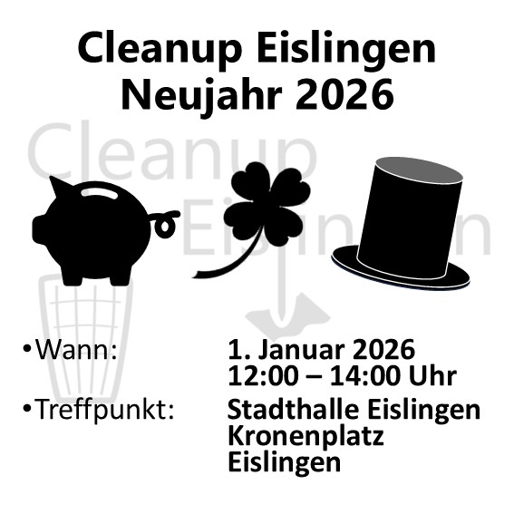 Wir starten das Neue Jahr mit einem Cleanup und treffen uns dazu um 12 Uhr an der Stadthalle Eislingen.